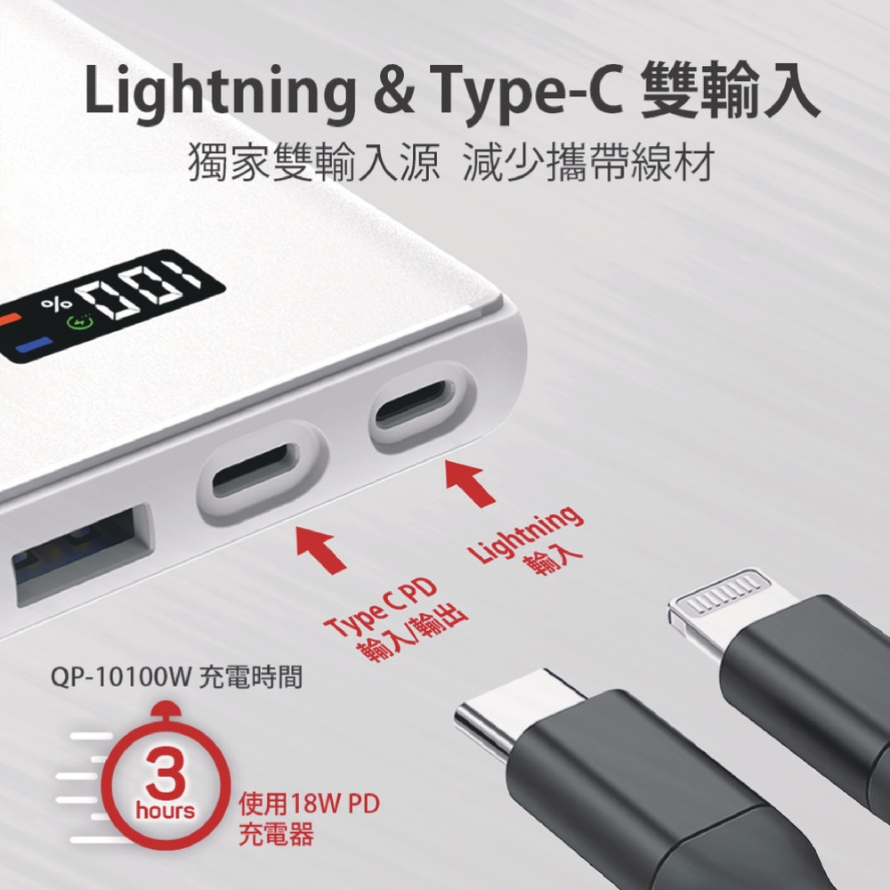 3. Lightning、Type-C 雙向快充,出門僅需一條充電線!