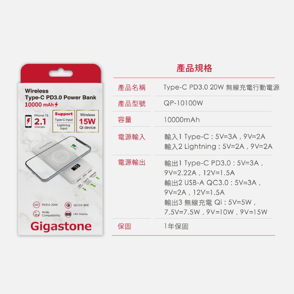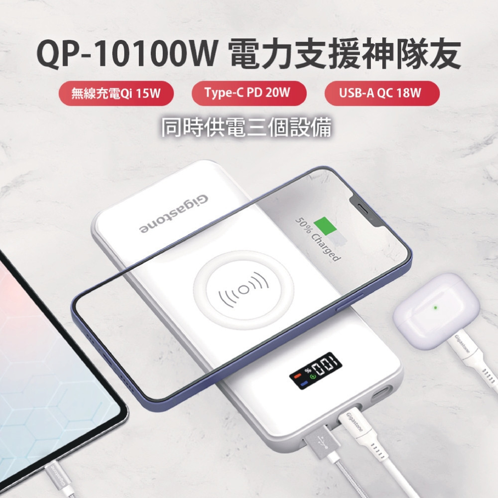 1. 三合一行動電源:支持三個裝置充電,結合無線充電盤、10000mAh 行動電源、電量指示